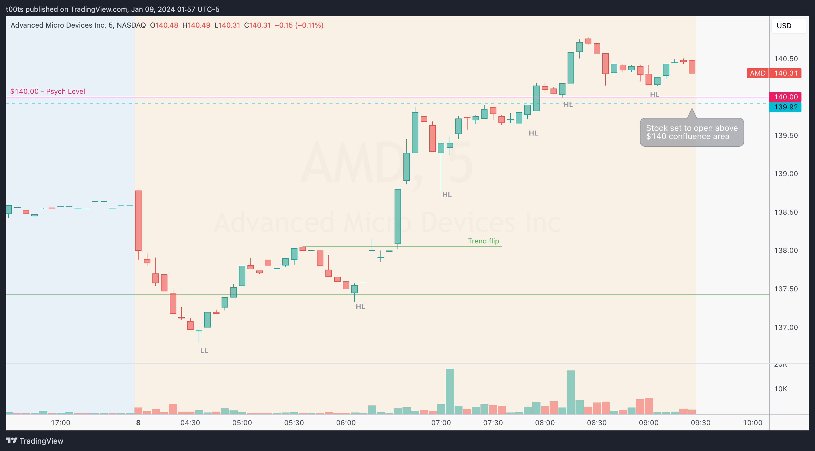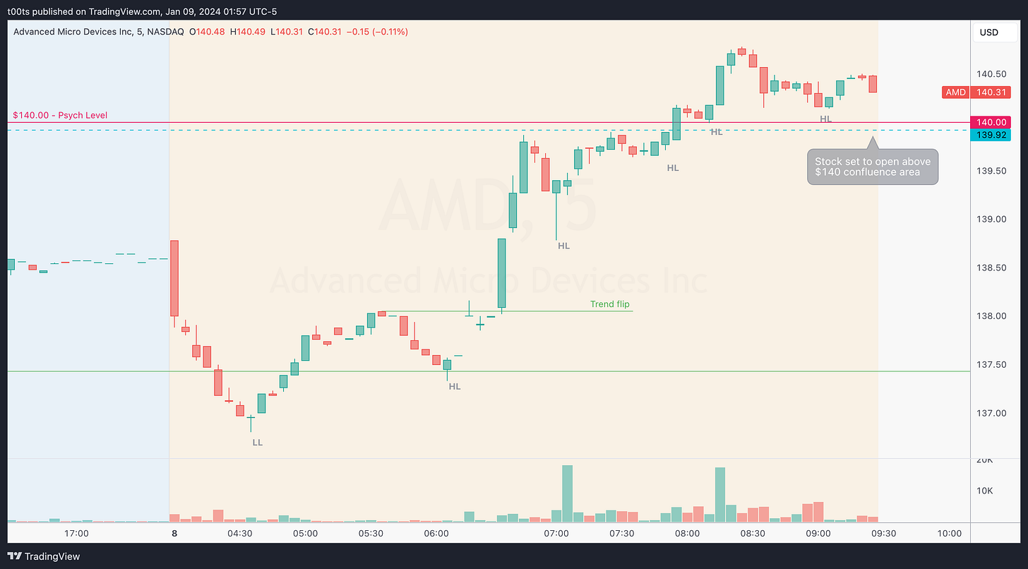 Strong pre-market action: Opening above our key level and the $140 psych. mark