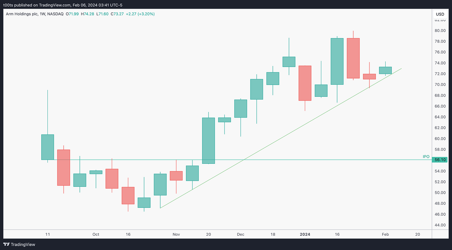 We already covered what Arm actually does. For anyone not familiar with them, give this intro a quick read and you'll understand what I'm talking about. In a nutshell, despite belonging to the semis sector, they don't really produce any chips. Regardless, it's a recently new IPO and their presence is prominent in top-of-the-line products. Quite possibly the device you're reading this post on runs on an ARM chip.