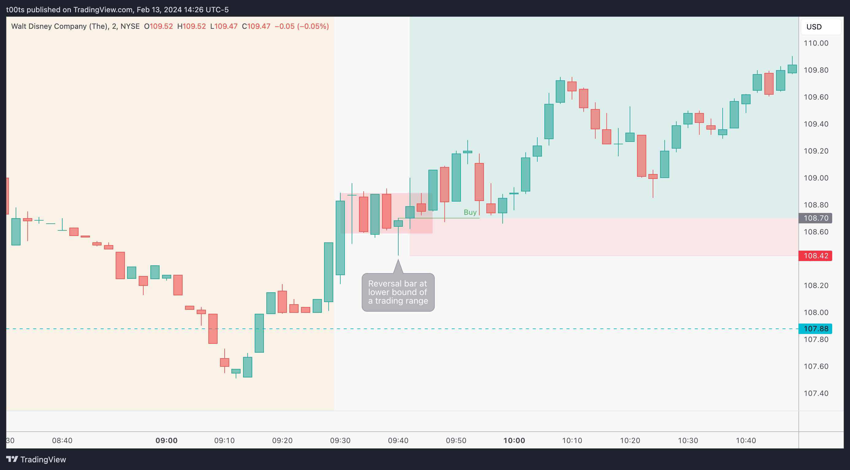 Intraday cue: Bullish 2m reversal bar on the lower bound of a range