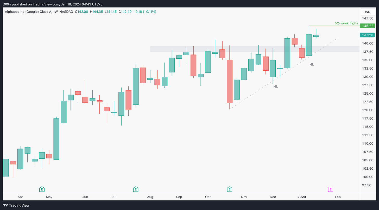 Investors may be slightly concerned about the whole rise of LLM's and how late Google came into the party. Looks like the demo of Gemini -their newest multimodal LLM- was staged. Regardless, the stock has shown resilience so far.