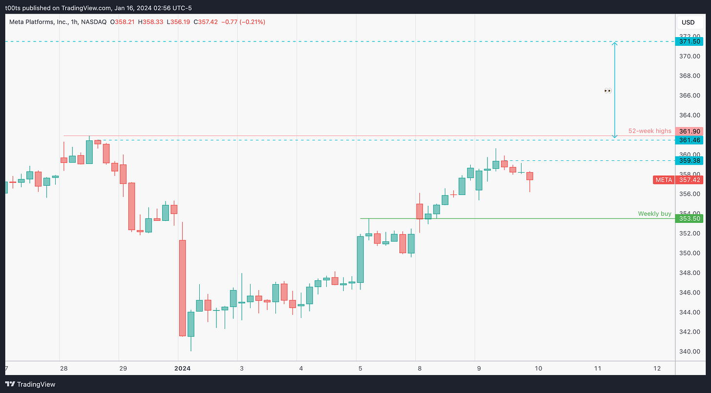 Scenario 2: If price breaches and closes above the $361.46 level, find a momentum entry to jump in risking against the level itself.