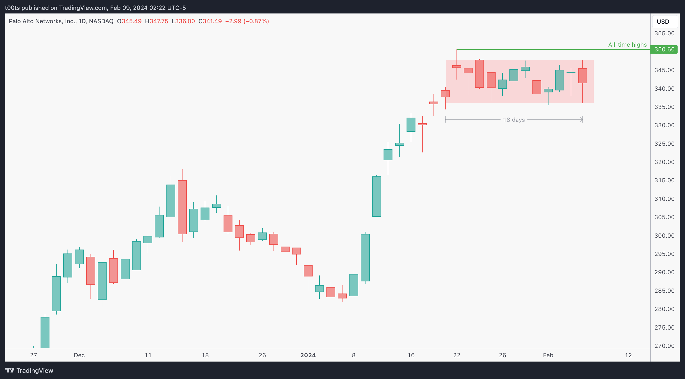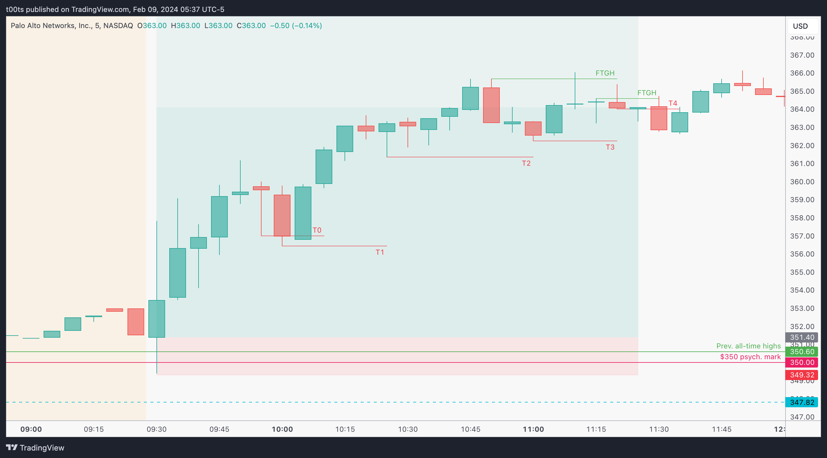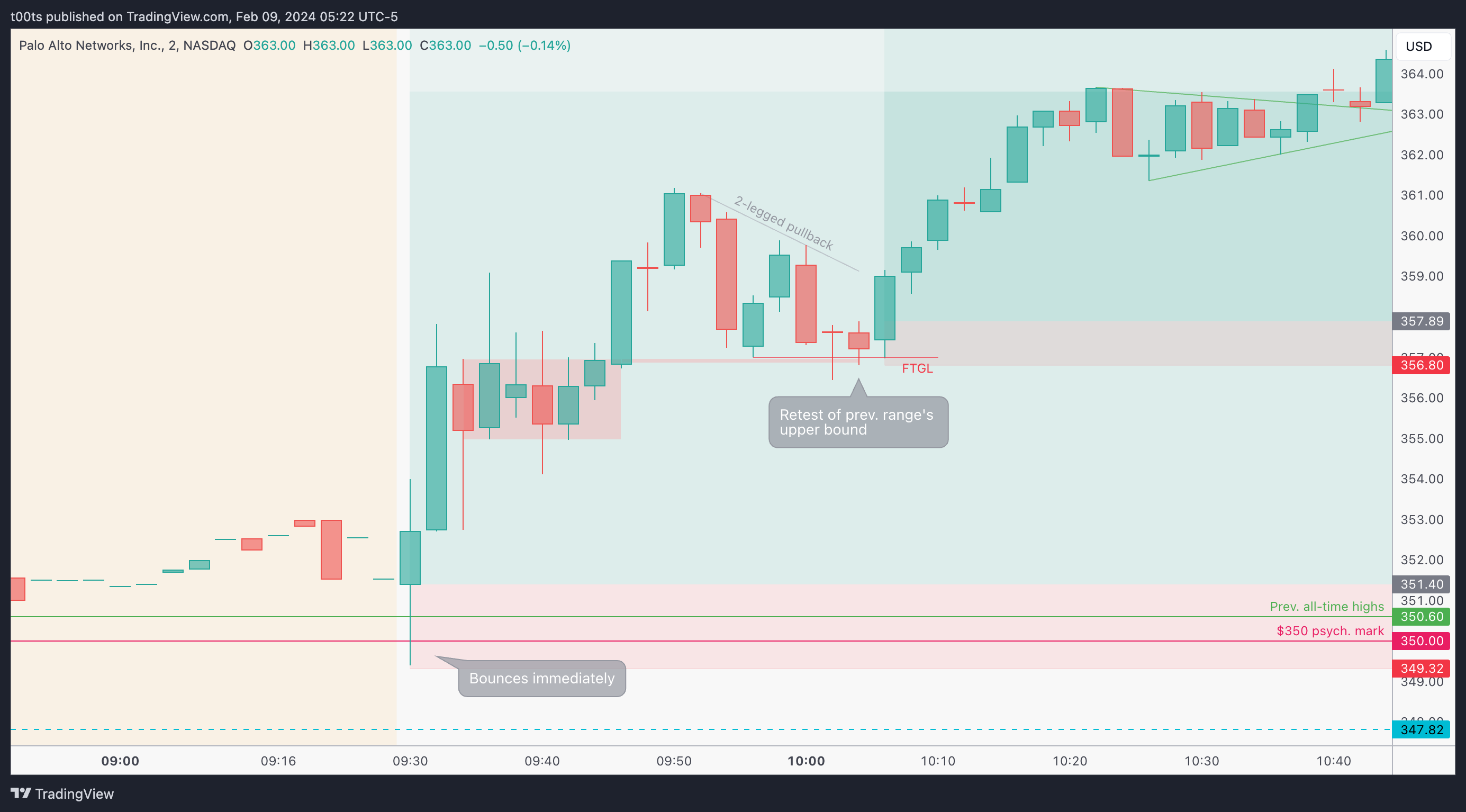 This consolidation is setting us up for a continuation move higher, and all we had to do was set alerts around the $350 area, which is not only a psych. level but also the current all-time high level for this stock.