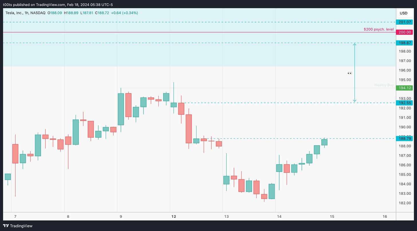 There's not much to highlight in the pre-market. Price keeps reacting to the $190 psych. level but that's not surprising. We're clearly set to open very close to the $188.79 level, which is fantastic because we can plan a trade off of a potential bounce there.