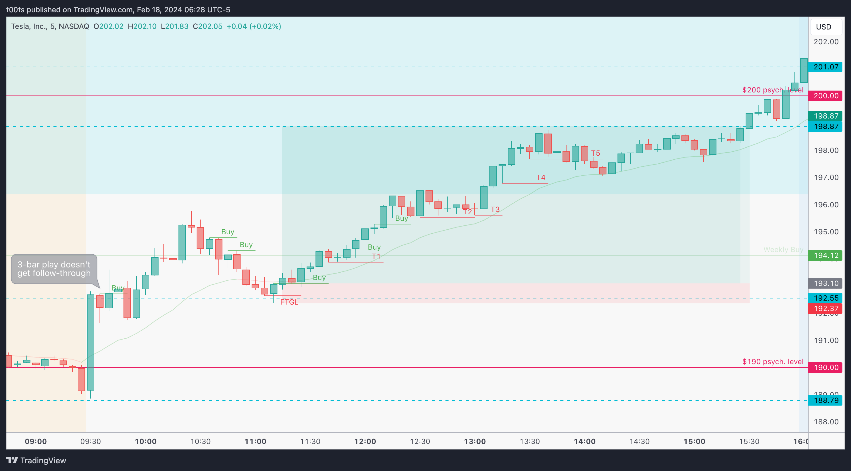 Just as we saw on yesterday's post, the only thing wrong with missing that first move is disregarding the stock for a potential continuation trade. Just like ABNB, TSLA offered a continuation move that was clean and worth going over.